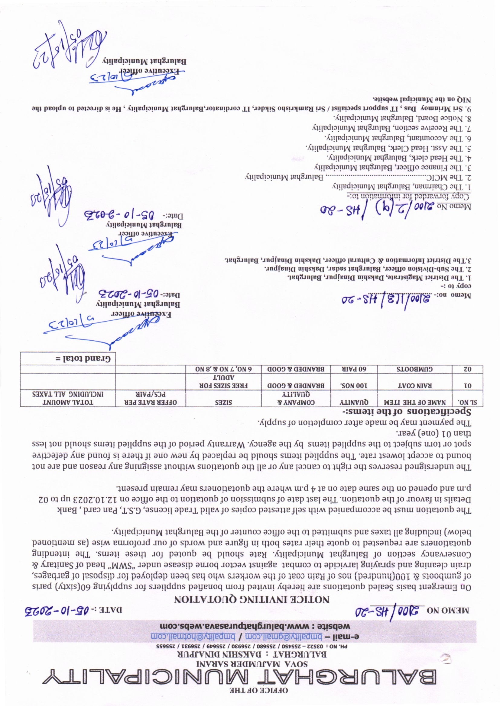 NIQ for suppling of Computer Articles for the Year 2022-2023 of Balurghat Municipality
